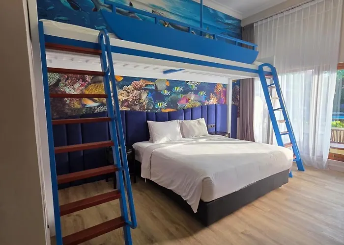 Featuring Wi-Fi throughout the property, the non-smoking Marine Bay Sanur Hotel is 7 minutes' stroll from Pantai Sanur. Situated fairly close to Jogging Track Pantai Sanur, this hotel offers a swimming pool, an aqua park and a shared lounge for guest enjoyment.